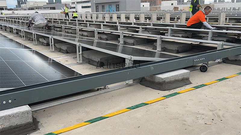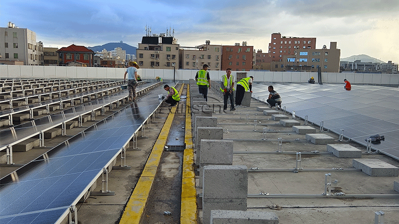 Về thiết kế, nó thuận tiện và nhanh chóng để cố định, và bảng điều khiển được lắp đặt bởi hệ thống hỗ trợ mái phẳng rất dễ lau chùi, đặc biệt là vào mùa đông khi tuyết cần được loại bỏ khỏi bảng điều khiển. Ưu điểm của hệ thống chấn lưu năng lượng mặt trời mái bằng này càng trở nên nổi bật hơn. Áp dụng cách lắp đặt phía trước và phía sau kiểu cố định, giúp việc lắp đặt an toàn và hiệu quả hơn, giảm chi phí xây dựng. Chúng tôi sẽ chọn một cách hợp lý các sơ đồ chấn lưu khác nhau cho các môi trường khu vực, lượng tuyết và tốc độ gió khác nhau.
