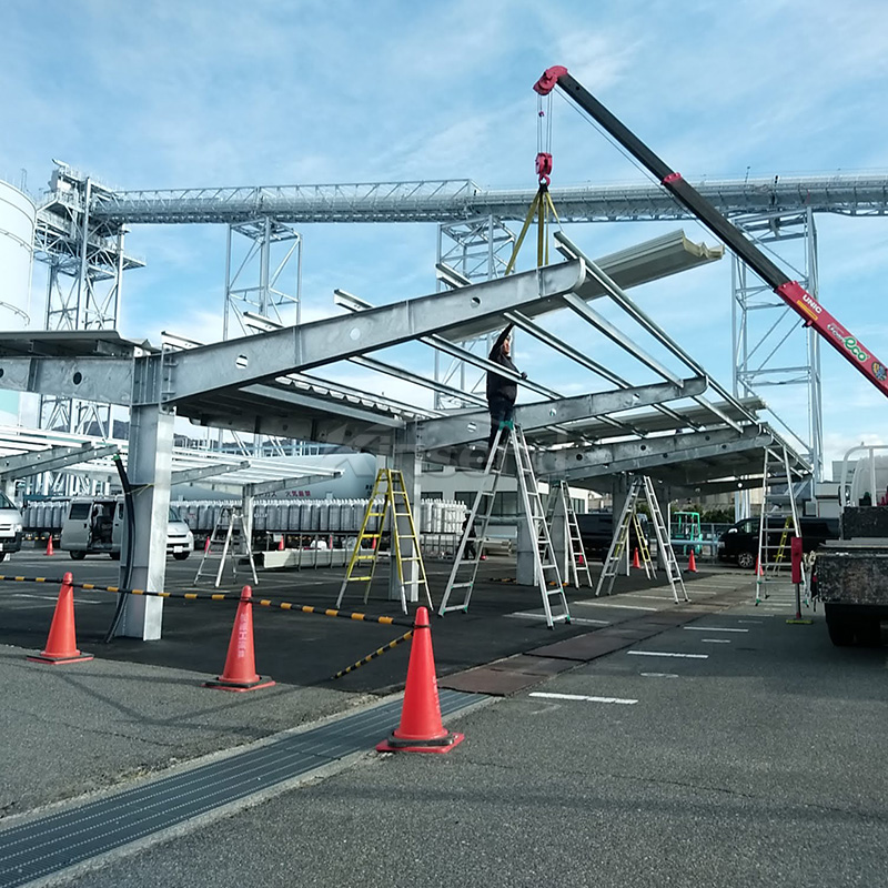 Mô tả: Thiết kế hợp lý của hệ thống hỗ trợ nhà để xe bằng thép giúp giảm sự cản trở của các trụ, giảm chướng ngại vật cho vị trí đỗ của xe và mang lại sự linh hoạt mạnh mẽ. Sử dụng vật liệu thép dày hơn để giảm số lượng cột giúp lắp đặt dễ dàng hơn