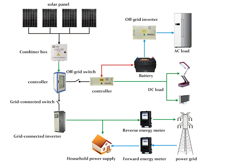 Năng lượng được tạo ra bởi pin mặt trời là DC. Nếu tải là tải AC thông thường hoặc nguồn điện được tạo ra cần được tích hợp vào lưới điện AC, thì nguồn DC cần được chuyển đổi thành nguồn AC tiêu chuẩn thông qua biến tần. Nếu năng lượng điện của hệ thống quang điện chỉ được sử dụng cho tải DC thì không cần biến tần. Biến tần được chia thành biến tần ngoài lưới và biến tần nối lưới, tương ứng được sử dụng cho các hệ thống quang điện nối lưới và ngoài lưới.