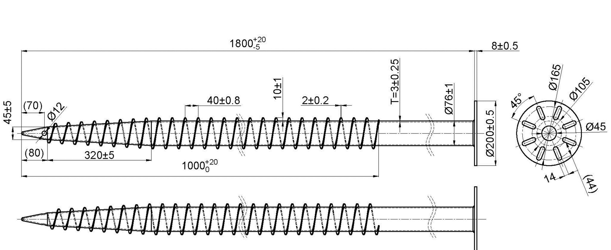 tên sản phẩm vít nối đất Với mặt bích vật chất thép Q235B Chống - ăn mòn Nóng - nhúng mạ kẽm (DIN en ISO1461) đường kính của ống 76mm (68mm / 89mm / 114mm) độ dày ống 3mm (2,5mm / 3,5mm / 3,75mm / 4mm / 5mm) đường kính mặt bích 200mm / 220mm chiều dài của ống 1600mm (theo theo khách hàng yêu cầu) màu sắc bạc sự bảo đảm 10 năm bảo hành