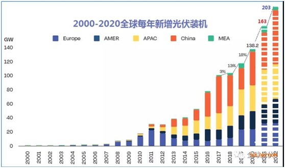 Theo dự báo của năng lượng mặt trời Châu Âu, toàn cầu mới PV sẽ đạt 163 GW vào năm 2021, 203 GW vào năm 2022, 225 GW vào năm 2023, 239 GW trong 2024 và 266 GW vào năm 2025. Dự báo lạc quan nhất là vào cuối năm 2025, thế hệ năng lượng mặt trời tích lũy toàn cầu sẽ đạt 2100GW.
