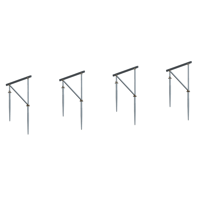 Vật liệu chính của hệ thống lắp đặt mặt đất pv là hợp kim nhôm có độ tinh khiết cao, trọng lượng nhẹ, các bộ phận được lắp ráp sẵn có thiết kế kết cấu đơn giản, giúp giảm chi phí tại chỗ một cách hiệu quả. Bề mặt hỗ trợ được anot hóa, có khả năng chống ăn mòn cao. Hệ thống mặt đất với nền móng vít mặt đất có khả năng thích ứng môi trường mạnh mẽ và có thể được sử dụng rộng rãi trong các dự án mặt đất của nhà máy điện ở các địa hình khác nhau. Lắp ráp trước cao giúp giảm bớt những khó khăn khi lắp đặt tại chỗ.