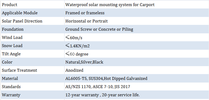 Khung đỗ xe năng lượng mặt trời sử dụng các cấu hình dày hơn, có thể tăng khoảng cách để làm cho bãi đỗ xe ngắn gọn và an toàn hơn, Chúng tôi đã cung cấp các giải pháp thiết kế khác nhau cho bãi đỗ xe một hàng và hàng đôi. Chúng phù hợp với các mô-đun có kích thước bất kỳ.