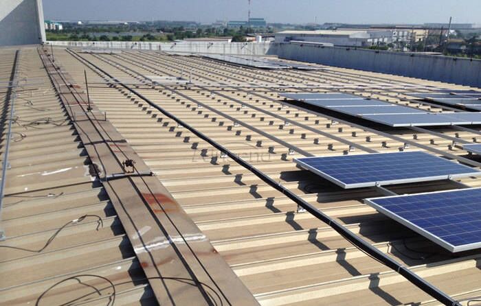 Không cần tăng hỗ trợ và tính toán độ nghiêng cho việc lắp đặt các nhà máy quang điện trên mái dốc. Trong quá trình lắp đặt, theo góc nghiêng của mái nhà, nhiều phòng sản xuất công nghiệp và nhà kho sử dụng hệ thống quang điện mái tôn nghiêng. Sơ đồ lắp đặt gần mái nhà là an toàn nhất. Sơ đồ đường ray hoặc không có đường ray được chọn và kẹp được khớp. Theo kích thước của sàn kim loại tùy chọn kẹp đứng Seam, kẹp Klip-Lok.