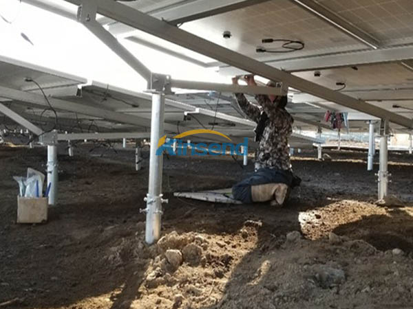 Hệ thống lắp đặt trên mặt đất được làm bằng nhôm để gắn trên nền bê tông hoặc vít nối đất,Lắp đặt nhanh chóng với tiến độ xây dựng nhà máy điện hệ thống quang điện mặt đất quy mô lớn.