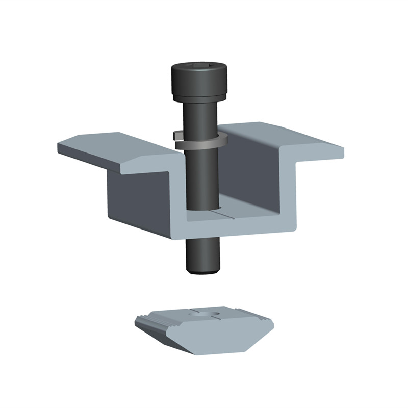 sự miêu tả kẹp giữa hình chữ t phổ quátđược áp dụng cho việc lắp 30 - 50mm có khung hoặc không có khung bảng điều khiển năng lượng mặt trời khối d được cấp bằng sáng chế có thể dễ dàng cài đặt trong rails.