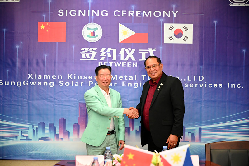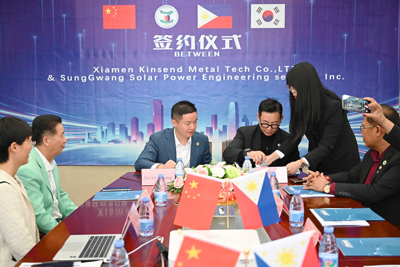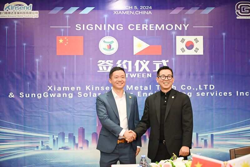 Vào ngày 5 tháng 3 năm 2024, lễ ký kết giữa SungGwang Solar Power Engineering Services, Inc. và Xiamen Kinsend Metal Tech Co.,LTD của Đặc khu kinh tế thành phố Zamboanga, Philippines Dự án Trang trại năng lượng mặt trời (Mặt đất) 20MW( megawatt) đã được tổ chức thành công tại Nhà máy Tập đoàn Shuang Heng của Công ty Kinsend ở Phúc Kiến, Trung Quốc.