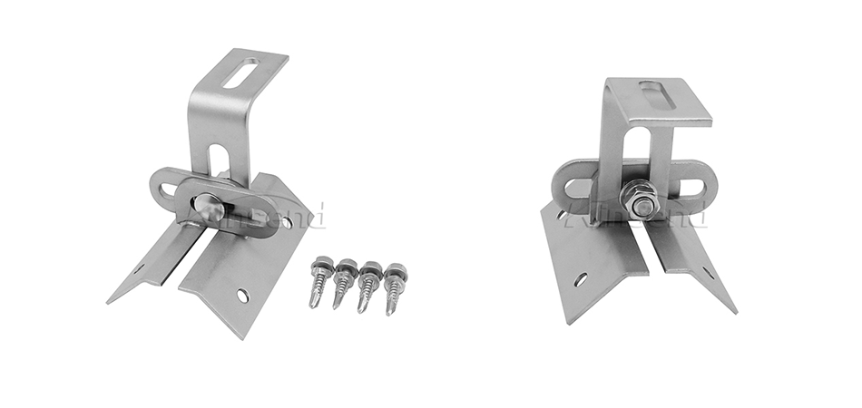 Móc thép không gỉ phổ quát có độ an toàn cao , Kẹp mái kim loại năng lượng mặt trời phổ quát phù hợp với hầu hết các mái kim loại hình thang, dễ lắp đặt. Nó có thể không có đường ray khi các tấm được đặt trong cảnh quan. Cố định chắc chắn trên sân thượng.
